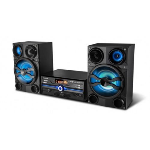 With LED light on speaker. The powerful mini HIFI Bluetooth Sound System has a built-in DVD player and USB. HiFi Amplifier design with LED light on the speakers